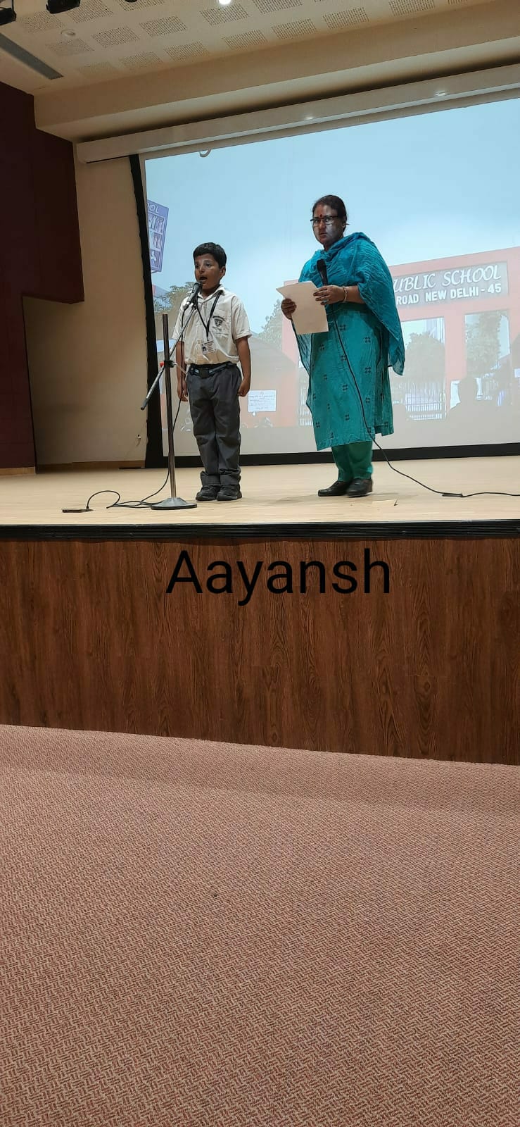 Beauty is the realm of poetry; the students of grade –ll enthusiastically participated in the competition as they got an opportunity to exhibit their talent and confidence. The competition inspired the young poets to come forward and recite on stage. The students came up with different poems and recited them with great fondness and zeal . They enjoyed the perfection of expression, thoughts, emotions, rhythm and music of words.
