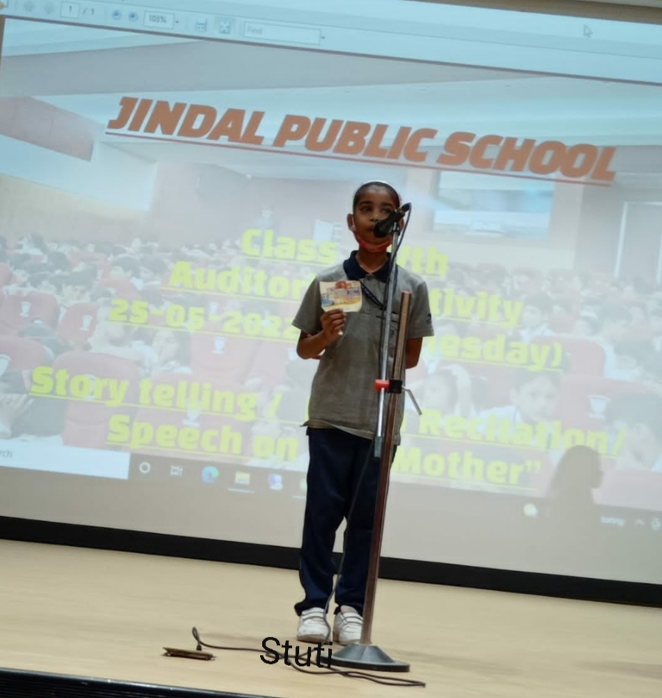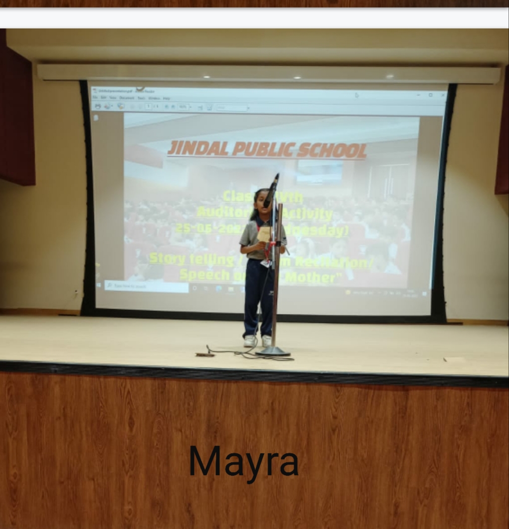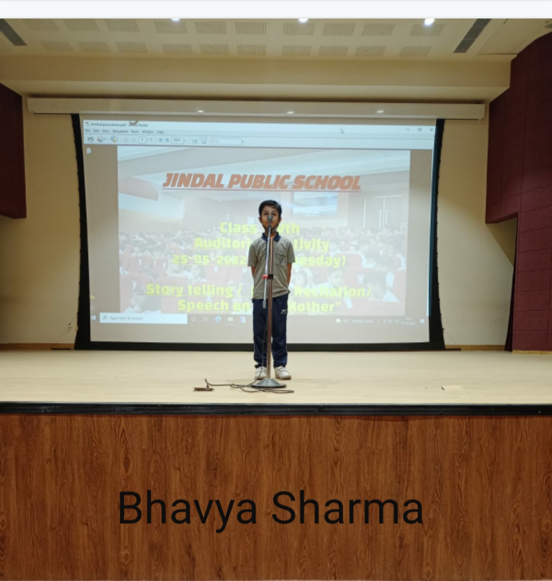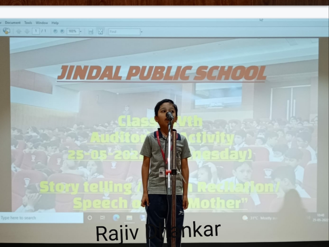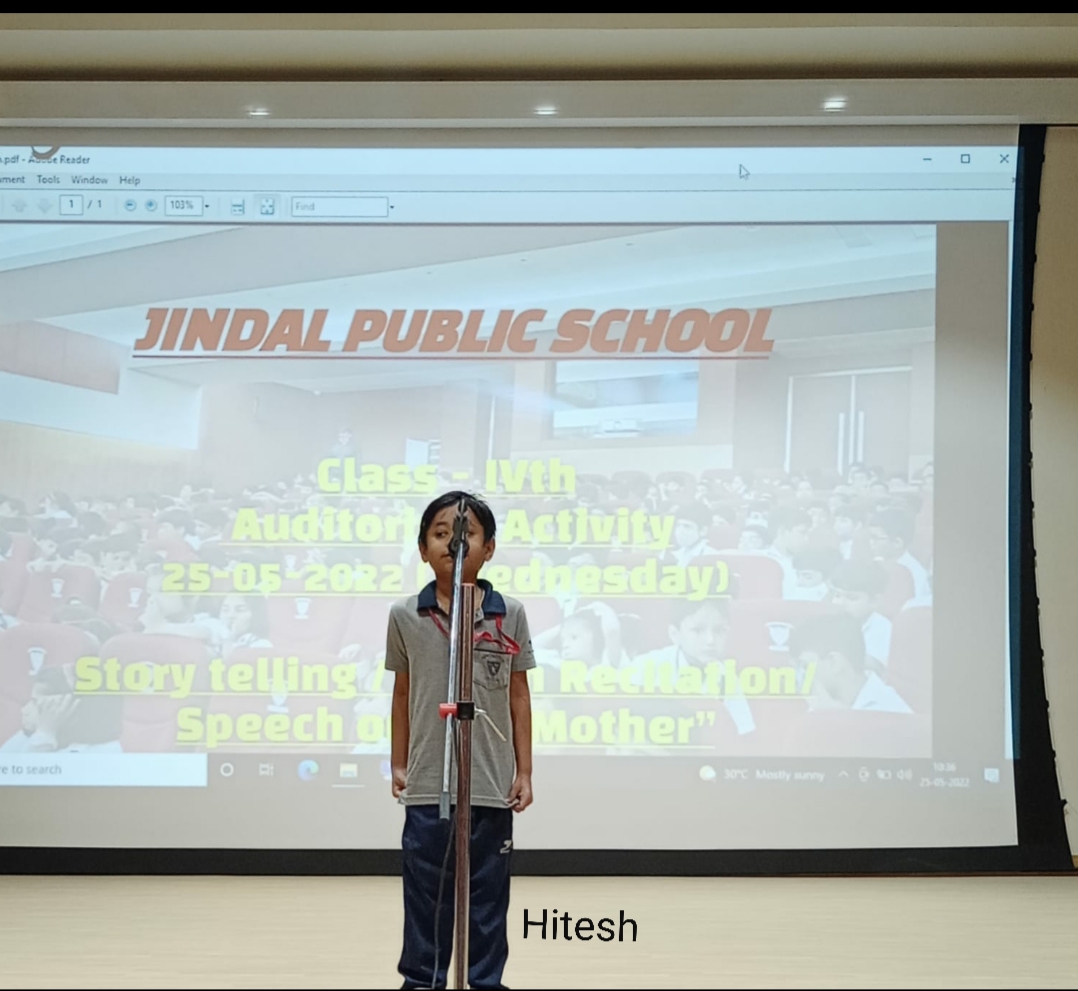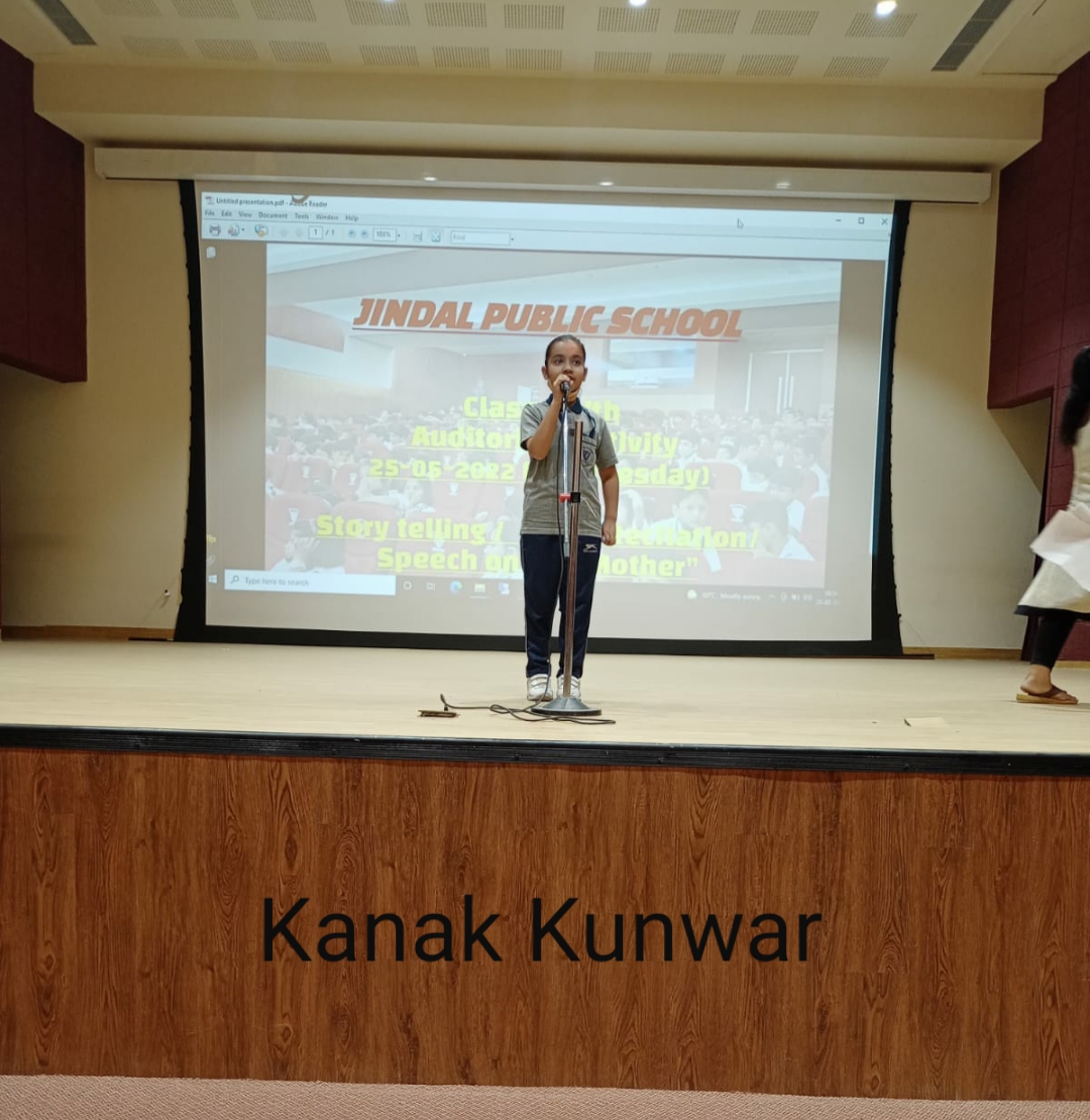 Auditorium Activity of Class-IV Event Date : 24 May , 2022 “Poetry is simply the most beautiful , impressive and widely effective mode ofsaying things.â€Storytelling is the process of using fact and narrative to communicate something to your audience.