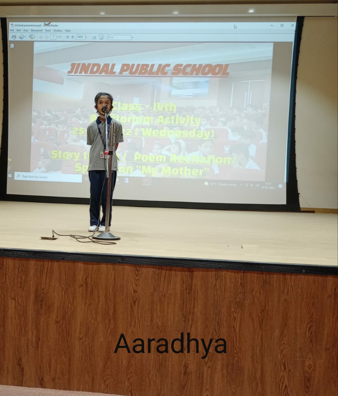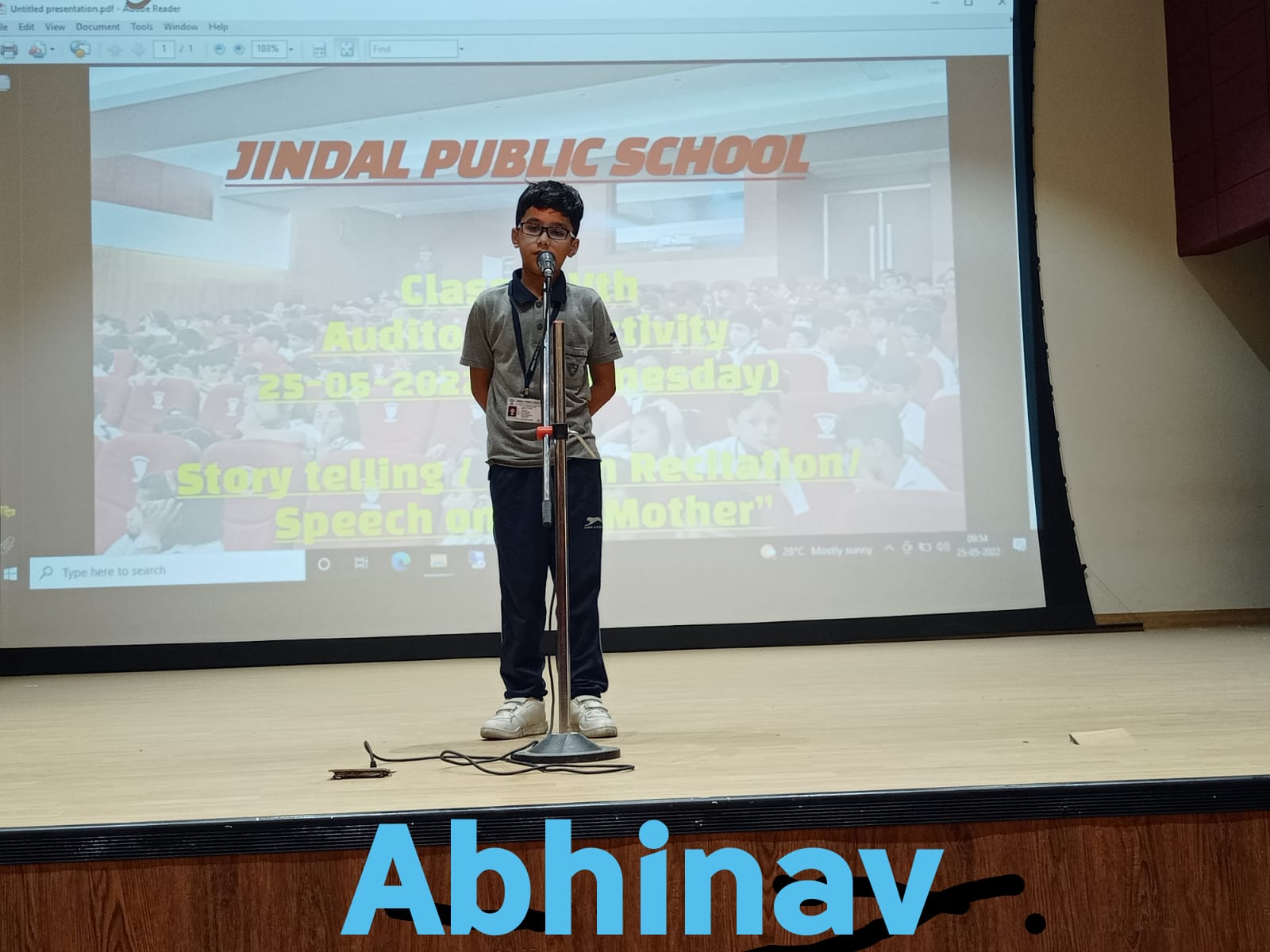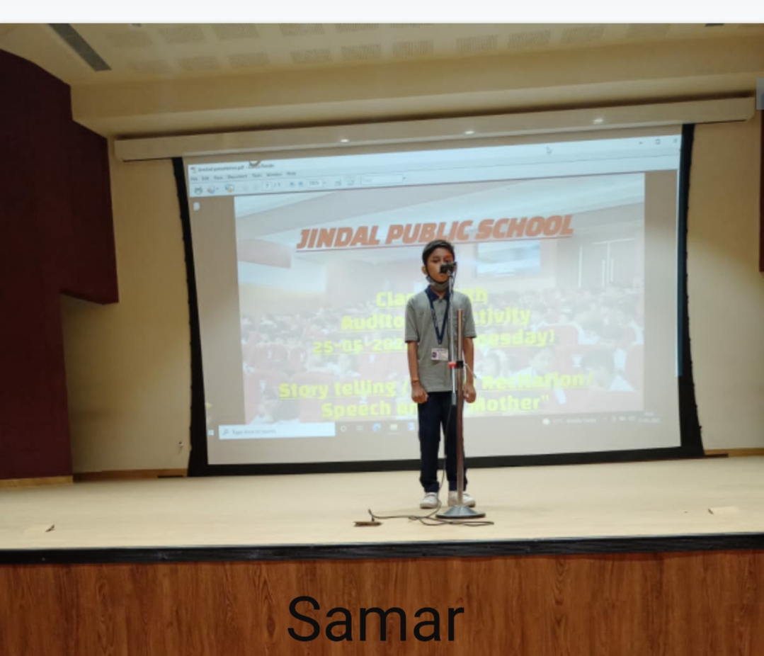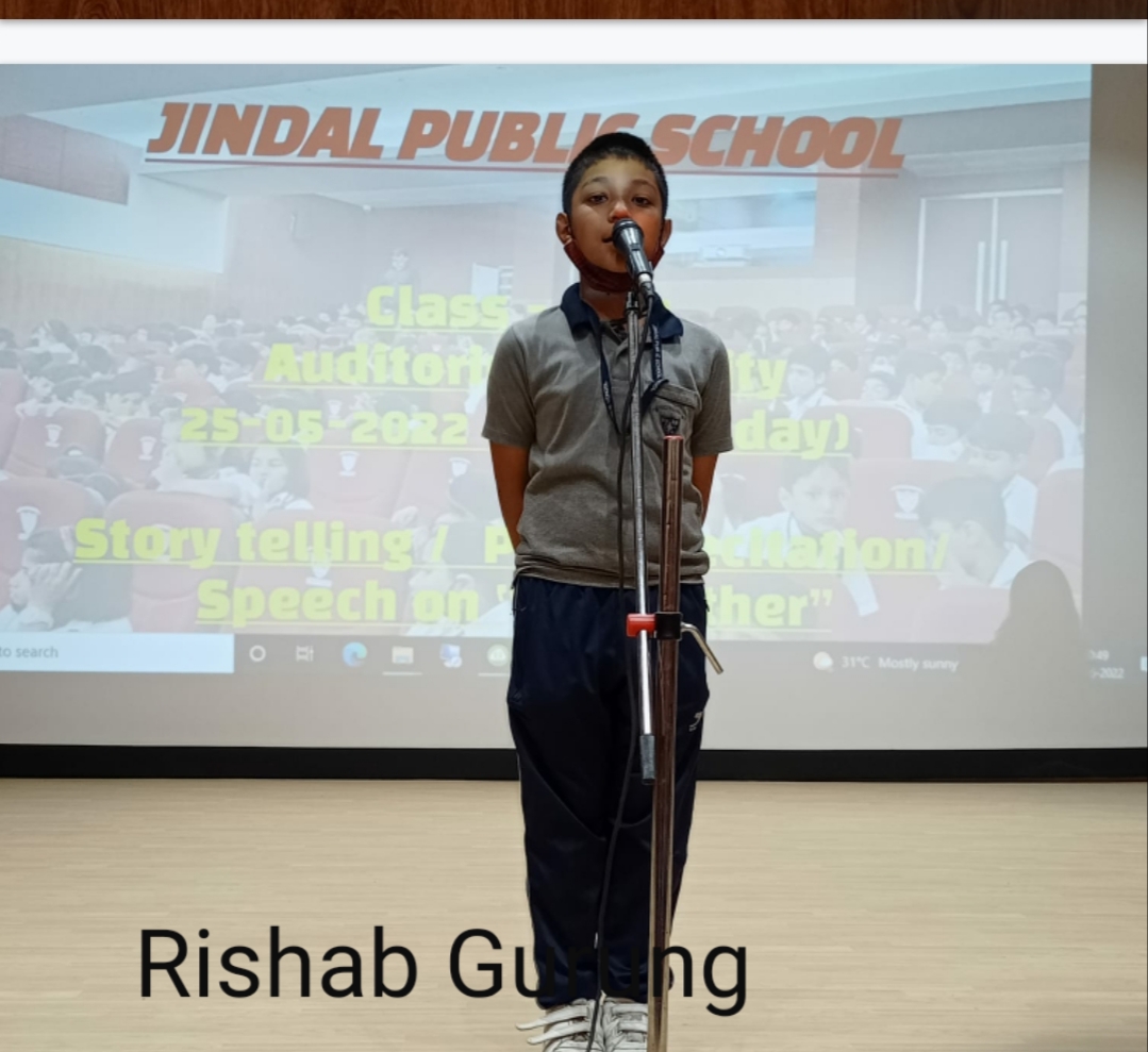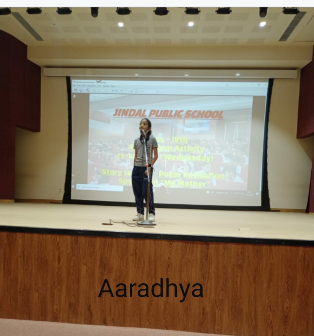 Auditorium Activity of Class-IV Event Date : 24 May , 2022 “Poetry is simply the most beautiful , impressive and widely effective mode ofsaying things.â€Storytelling is the process of using fact and narrative to communicate something to your audience.