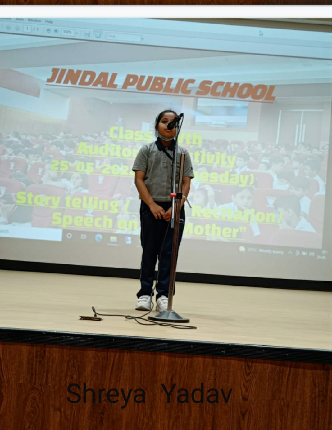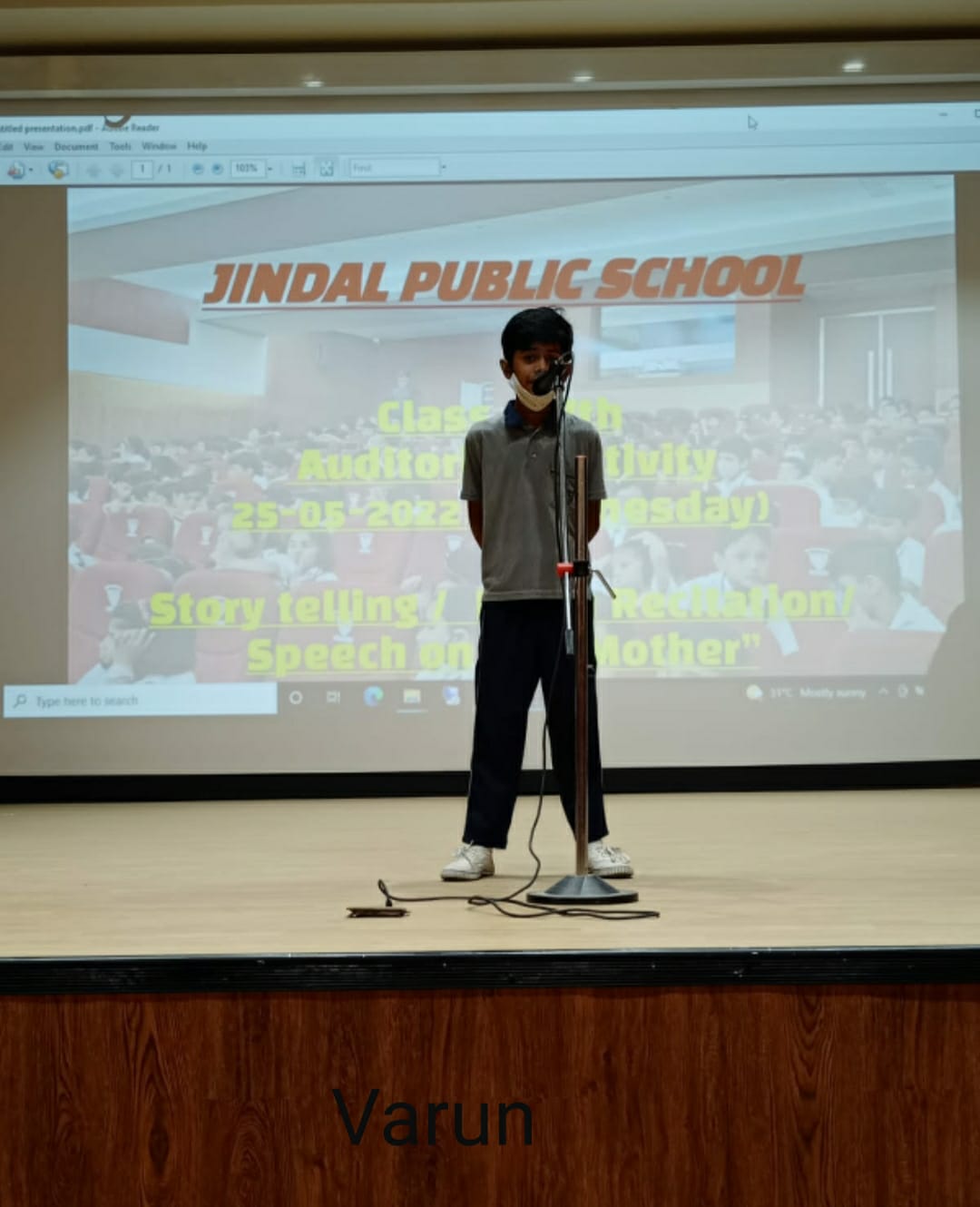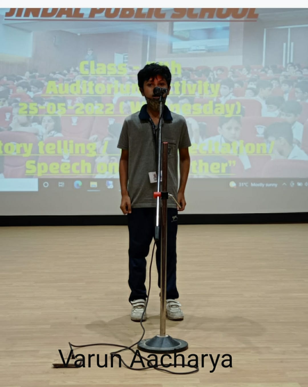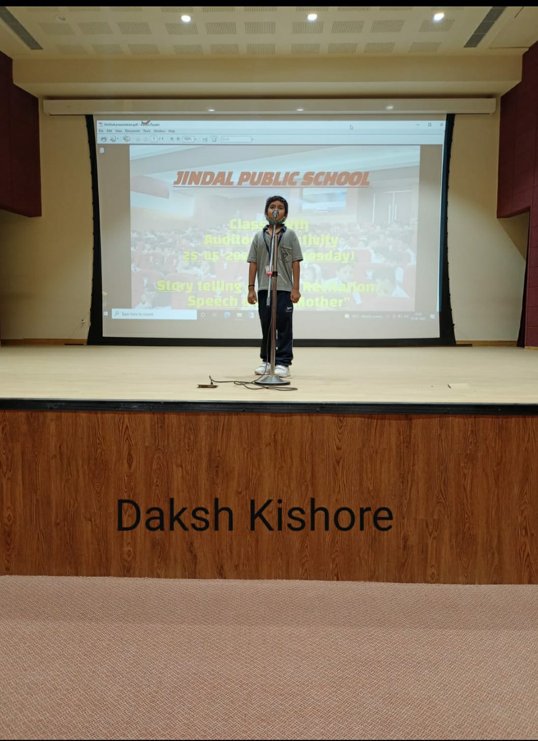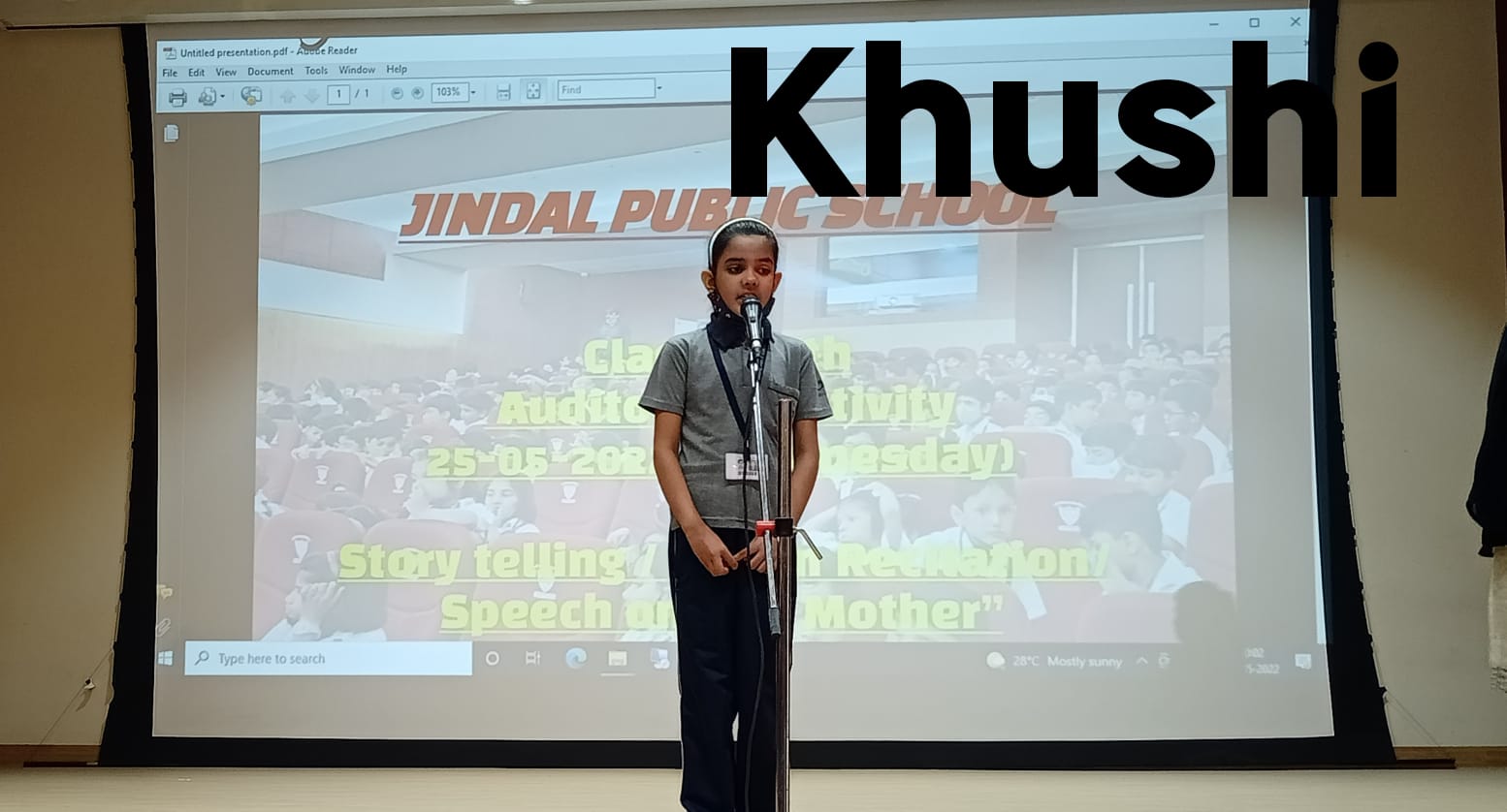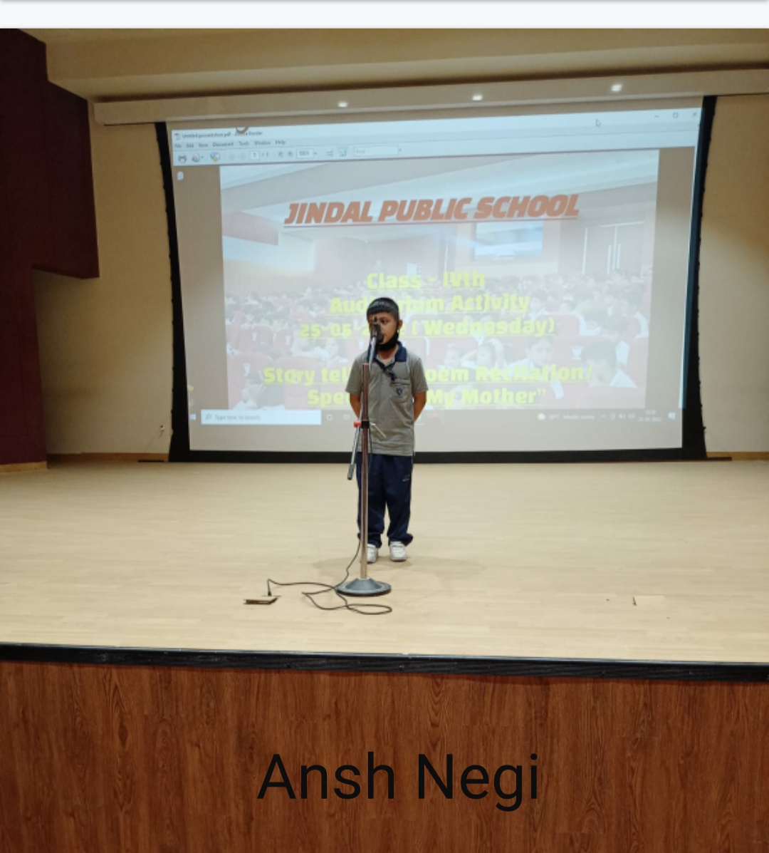 Auditorium Activity of Class-IV Event Date : 24 May , 2022 “Poetry is simply the most beautiful , impressive and widely effective mode ofsaying things.â€Storytelling is the process of using fact and narrative to communicate something to your audience.