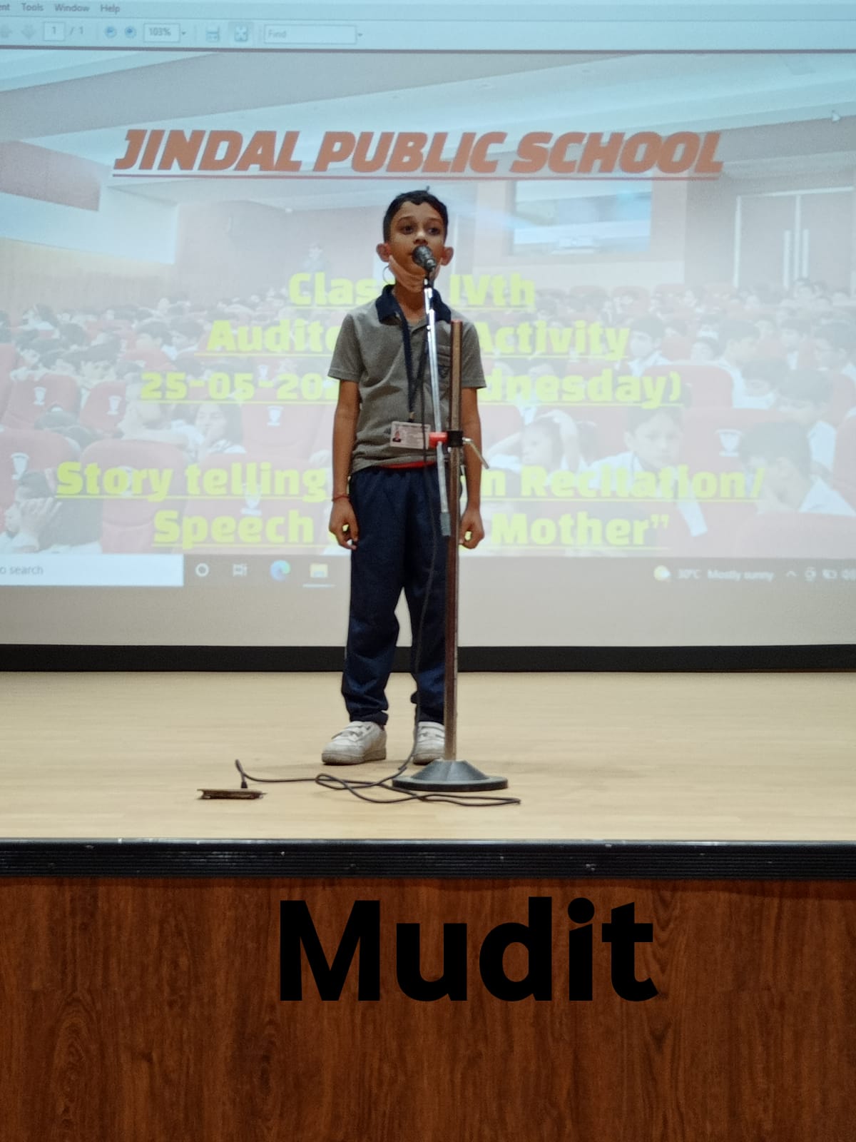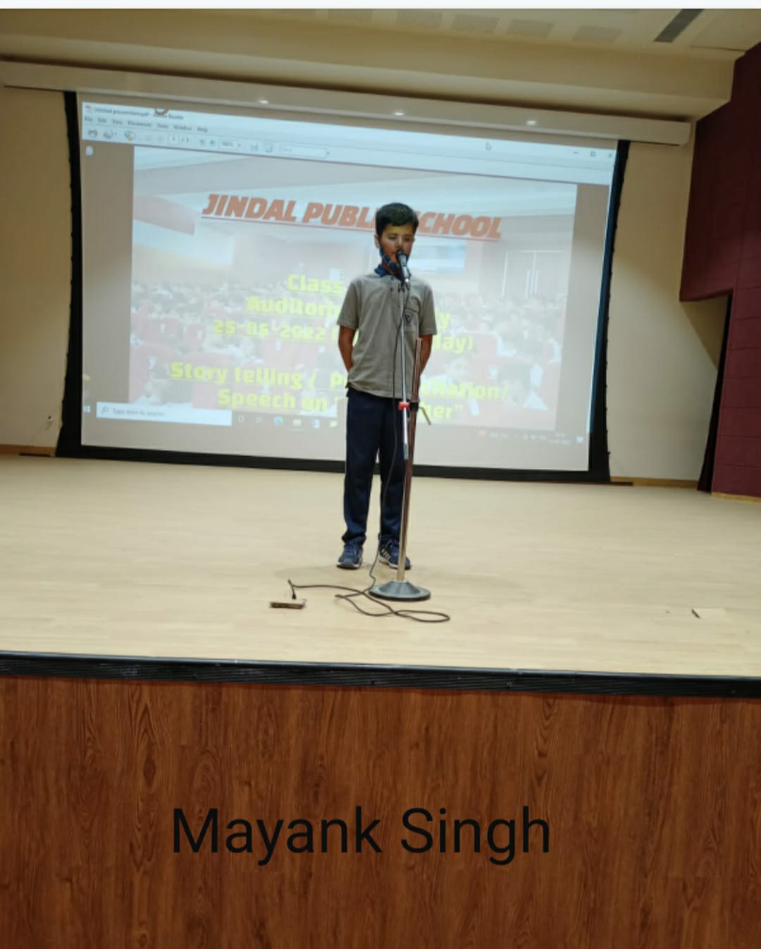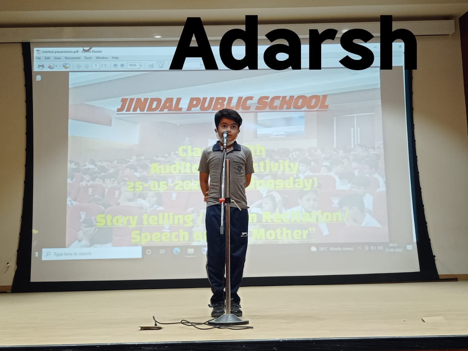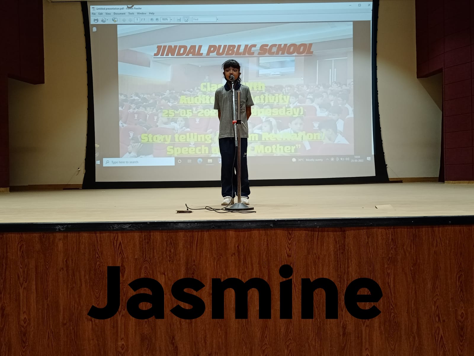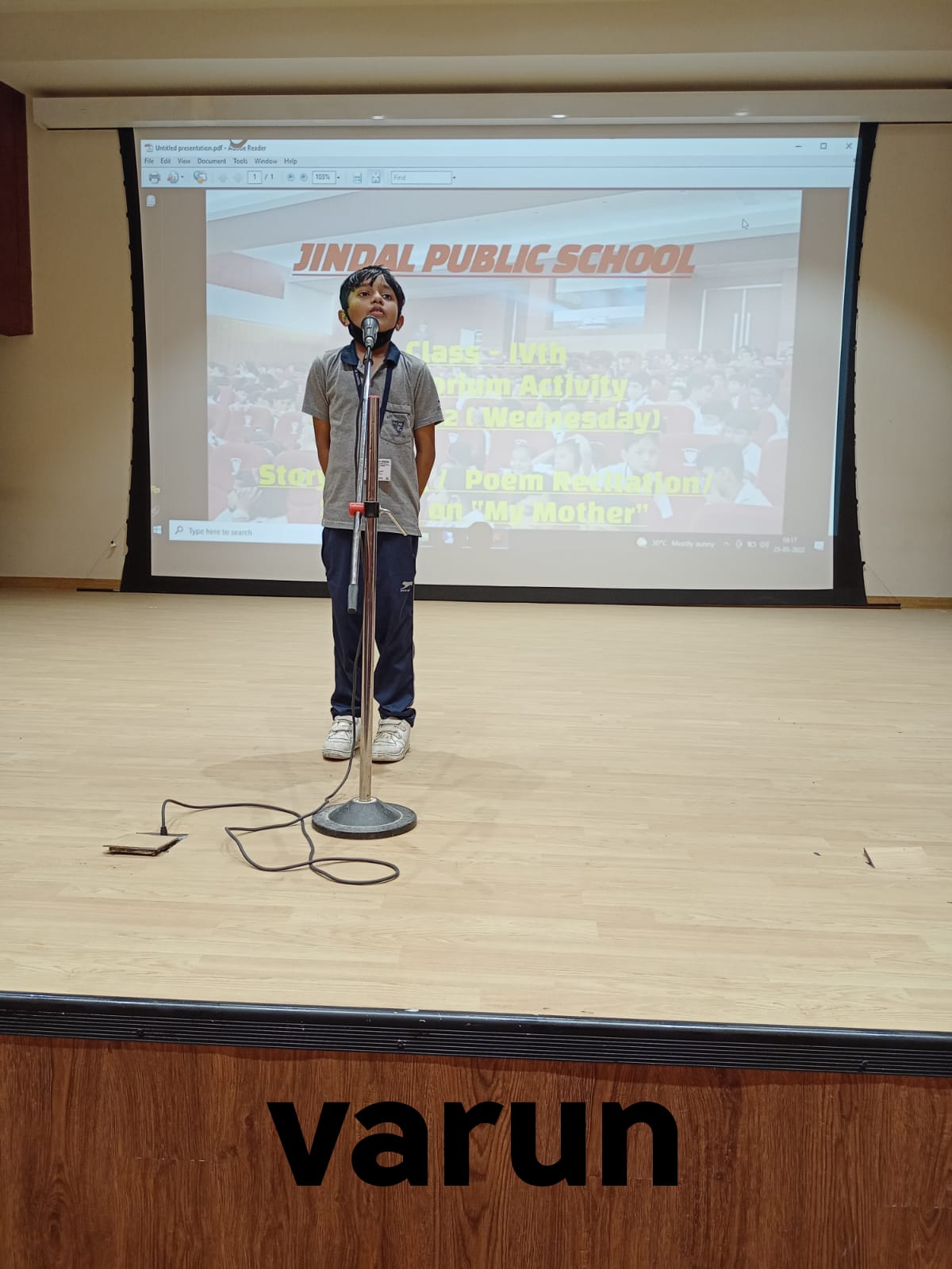 Auditorium Activity of Class-IV Event Date : 24 May , 2022 “Poetry is simply the most beautiful , impressive and widely effective mode ofsaying things.â€Storytelling is the process of using fact and narrative to communicate something to your audience.