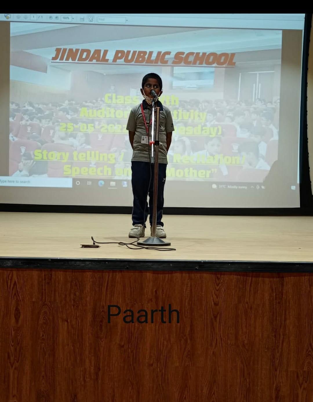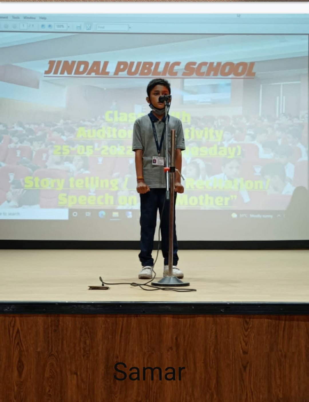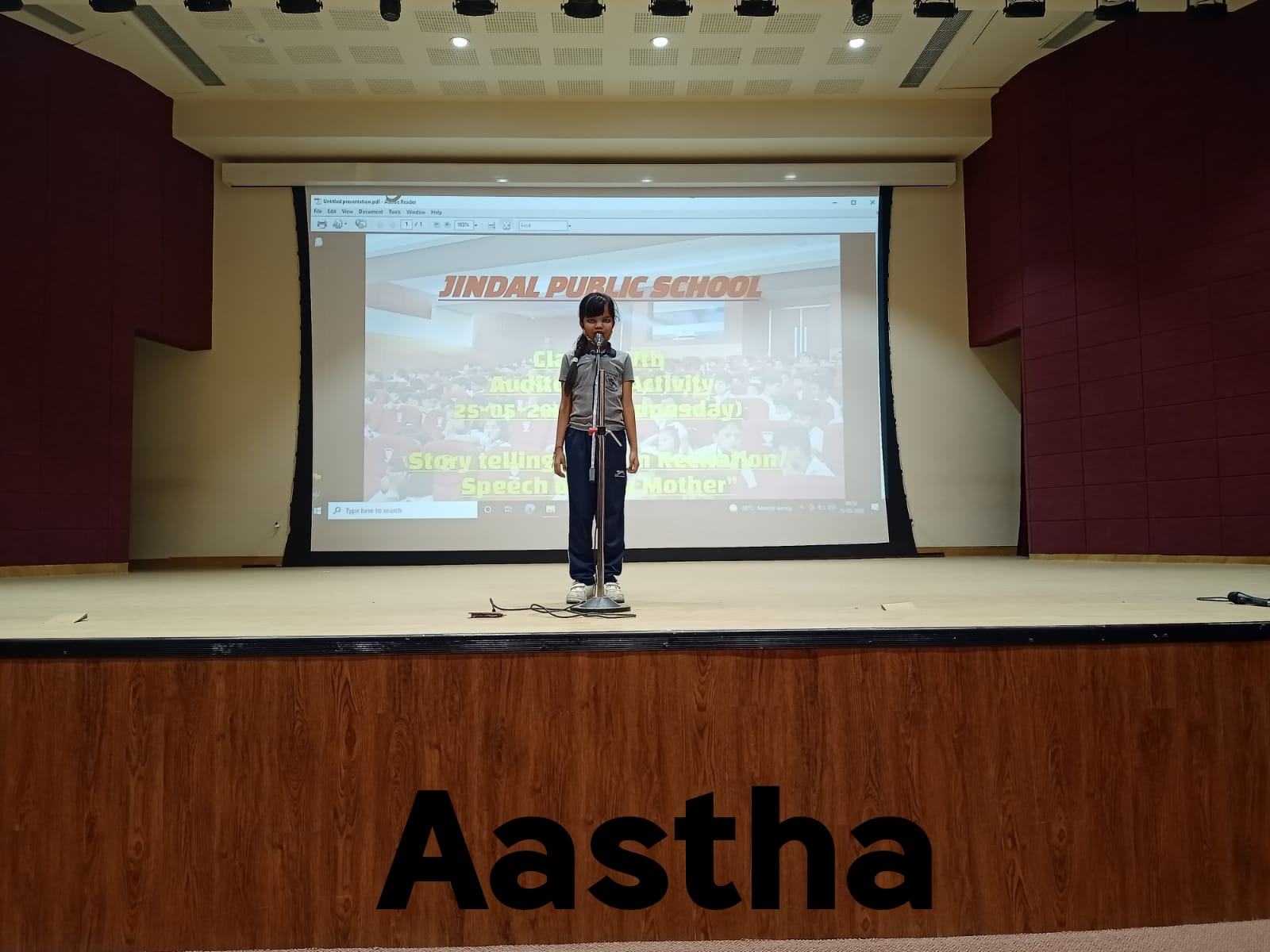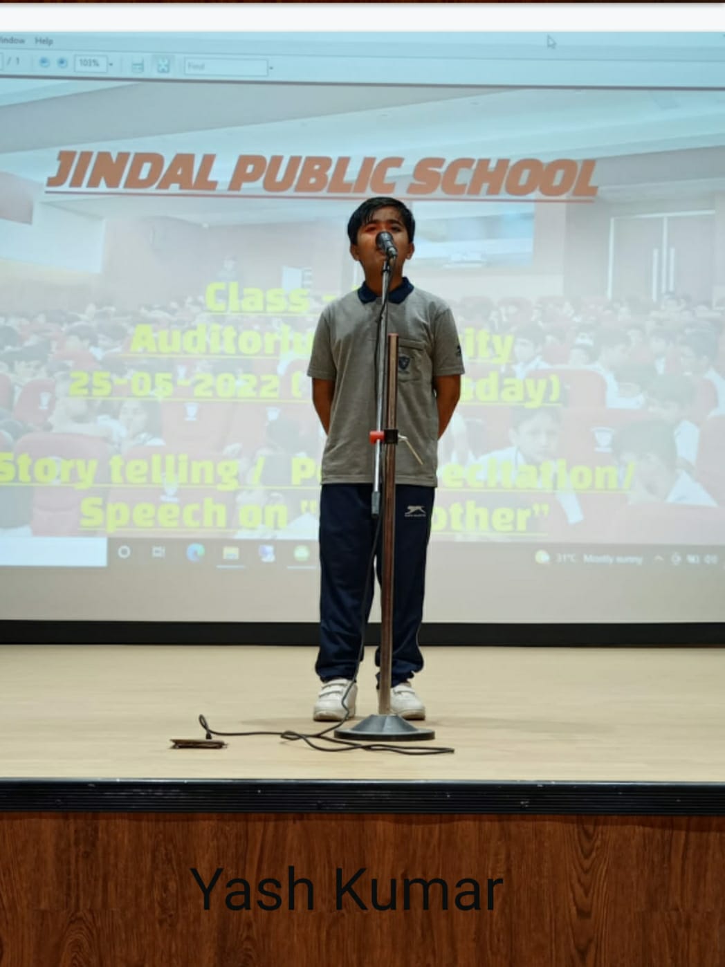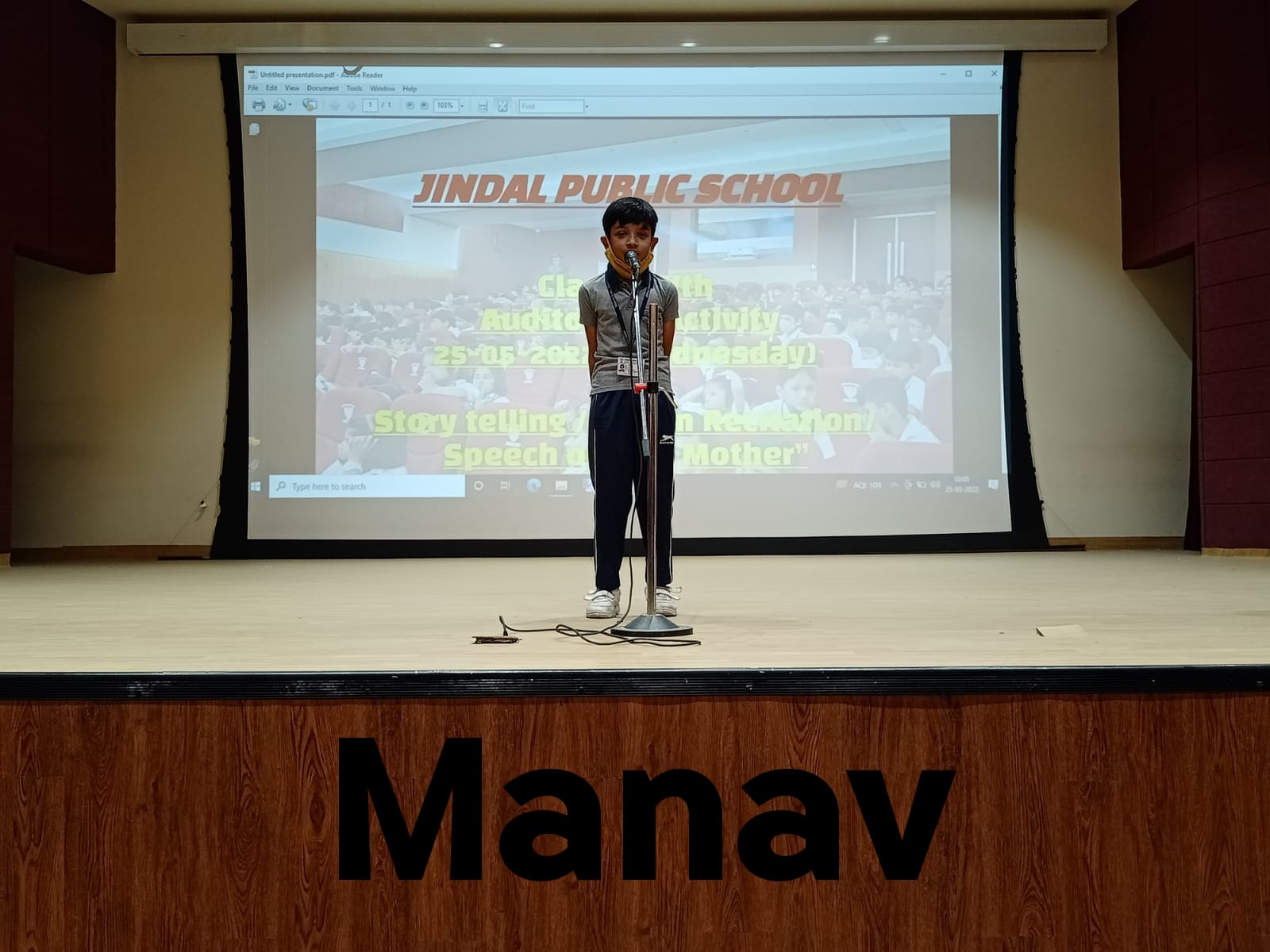 Auditorium Activity of Class-IV Event Date : 24 May , 2022 “Poetry is simply the most beautiful , impressive and widely effective mode ofsaying things.â€Storytelling is the process of using fact and narrative to communicate something to your audience.